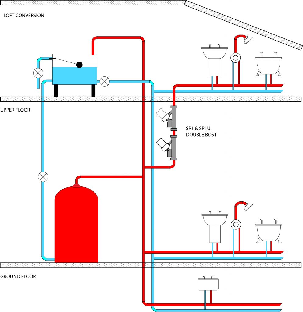 Using ShowerPowerBoosters to Get a Simple Low Cost and Effective Pressurised Hot Water supply to Your Loft Conversion.